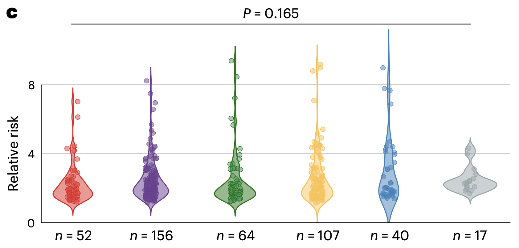 De auteurs tekenen bewust geen referentielijn bij RR = 1 in de figuur. Een visuele truc die het de lezer moeilijker maakt om te zien hoe mager de resultaten in feite zijn.